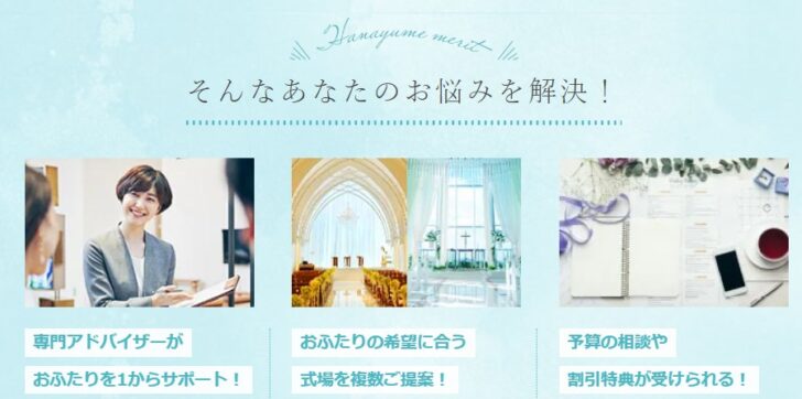 ハナユメで働いてらっしゃるかた方は「結婚業界をよくしたい」という強い使命感を持っている方ばかりなので、当サイトでも安心して紹介できると思いました。