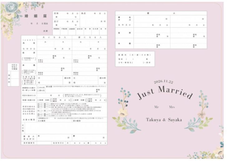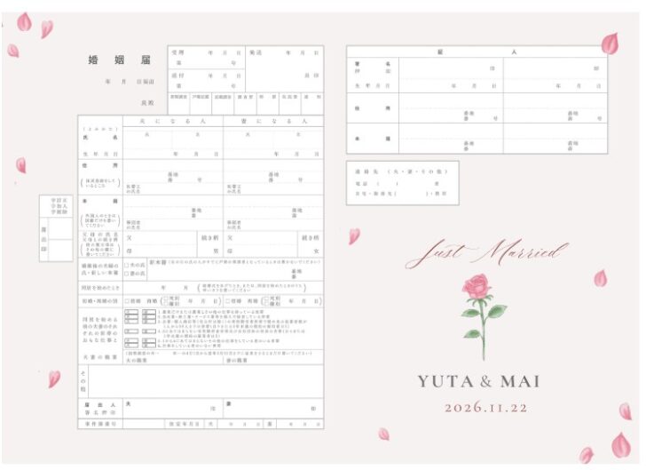 つまり!こんな可愛い婚姻届だって使えちゃうし、役所に提出できちゃうんです。