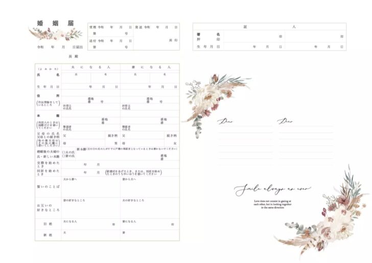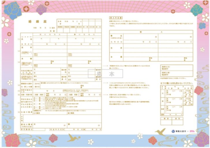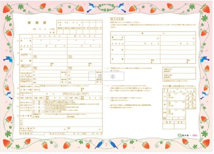 - 婚姻届は様式さえ守っていればデザインは自由。