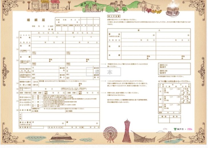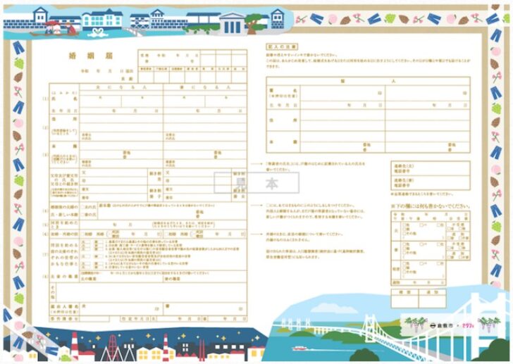 最近は日本全国の各自治体が、その地方の特色を活かしたオリジナルデザインの婚姻届を作成して、無料で配布しています。