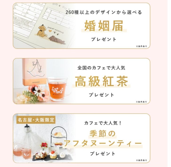 など、結婚準備を楽しみながら進められるのが大きな特徴です。